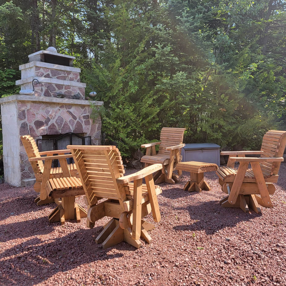 Meticulously crafted for elevated relaxation, this chair offers blissful gliding motion, easy access, and unmatched coziness. Embrace rustic elegance inspired by Northern Ontario.